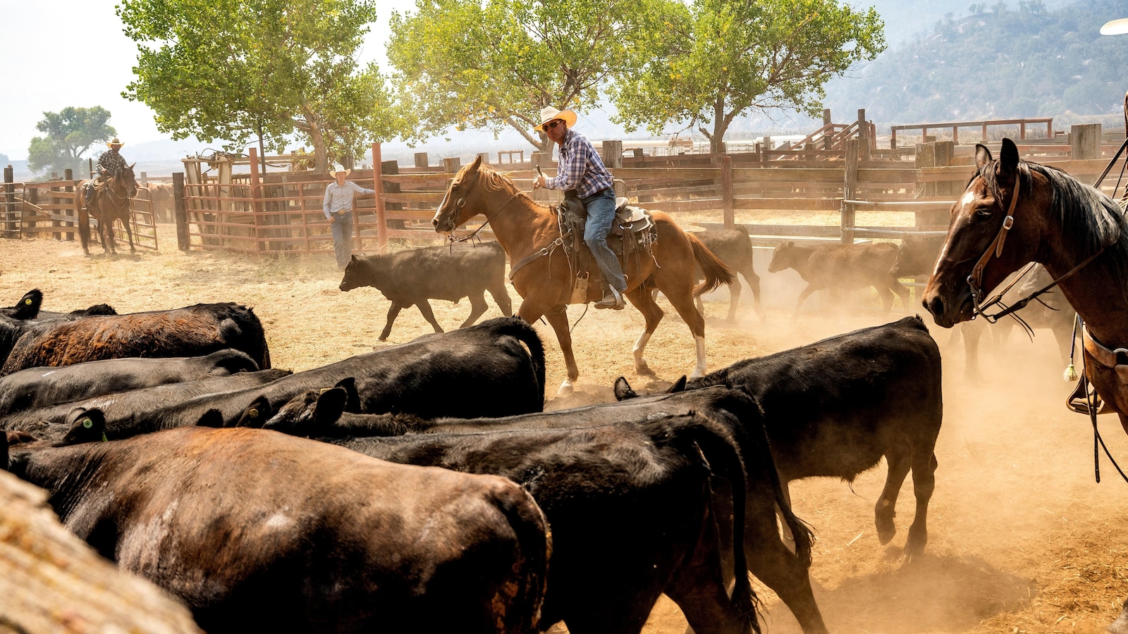 Ranchers evacuated cattle as aircraft made water drops on the encroaching flames.