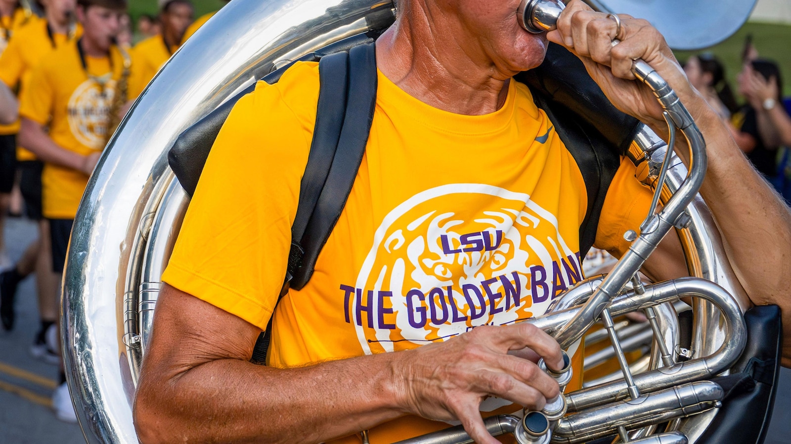After years of hard work — including taking up running with a weighted vest, marching through his neighborhood while hauling a 30 pound (14 kilograms) sousaphone, applying and getting accepted to LSU as a student and re-learning his instrument — the retired accountant made his debut on the field of Tiger Stadium during the football team’s home opener Saturday.